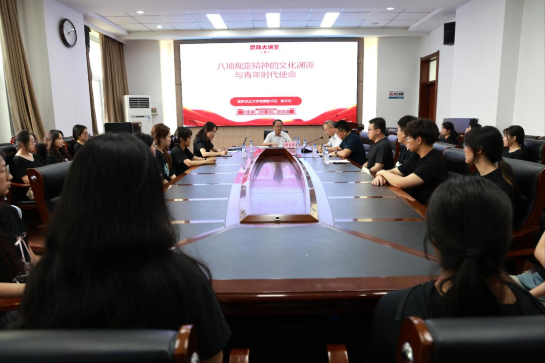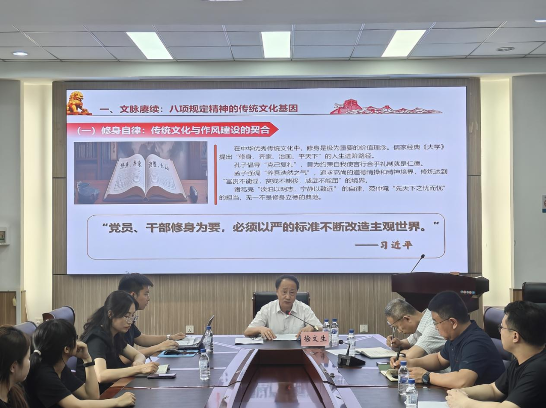 6月27日,学校党委副书记徐文生为学院师生代表讲授了一场题为“中央八项规定精神的文化溯源与青年的时代使命”的专题思政课。学院党委书记王志江主持会议。
