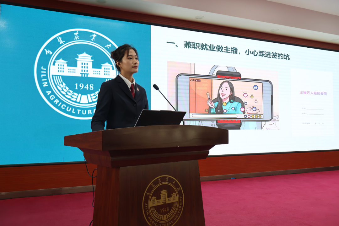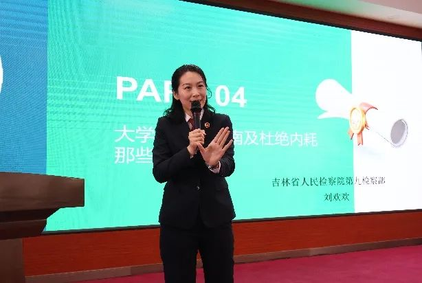 宣讲会上,吉林省人民检察院第六、七、八、九检察部的检察官同志分别结合工作实际,针对高校学生常见的求职就业、合同陷阱、网络诈骗、食品安全、校园霸凌等问题,向与会师生详细阐述了大学生容易误入的法律“雷区”及由此产生的严重法律后果,并讲授了识别、防范诈骗的方法和技巧。一个个鲜活的案例,让师生们直观感受到法律条文背后的实践智慧,引导同学们树立正确的法律观念,增强法治意识,学会运用法律武器维护自己的合法权益。