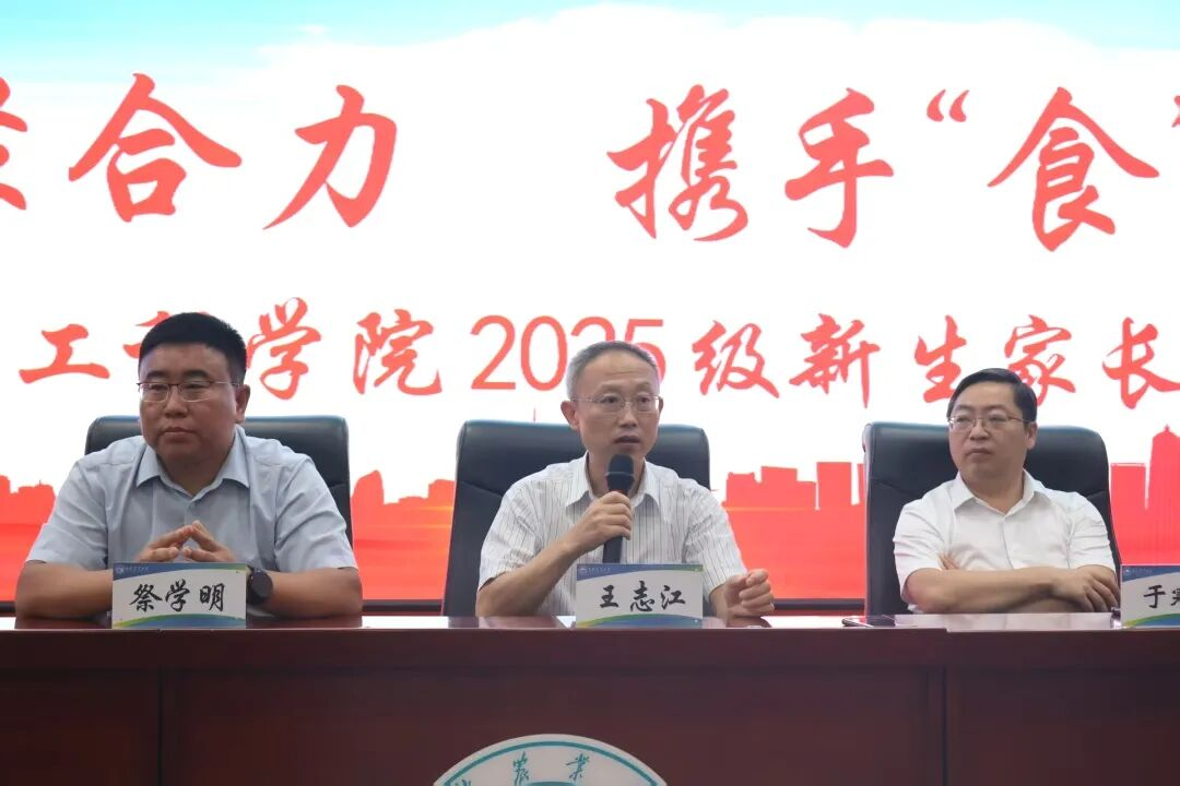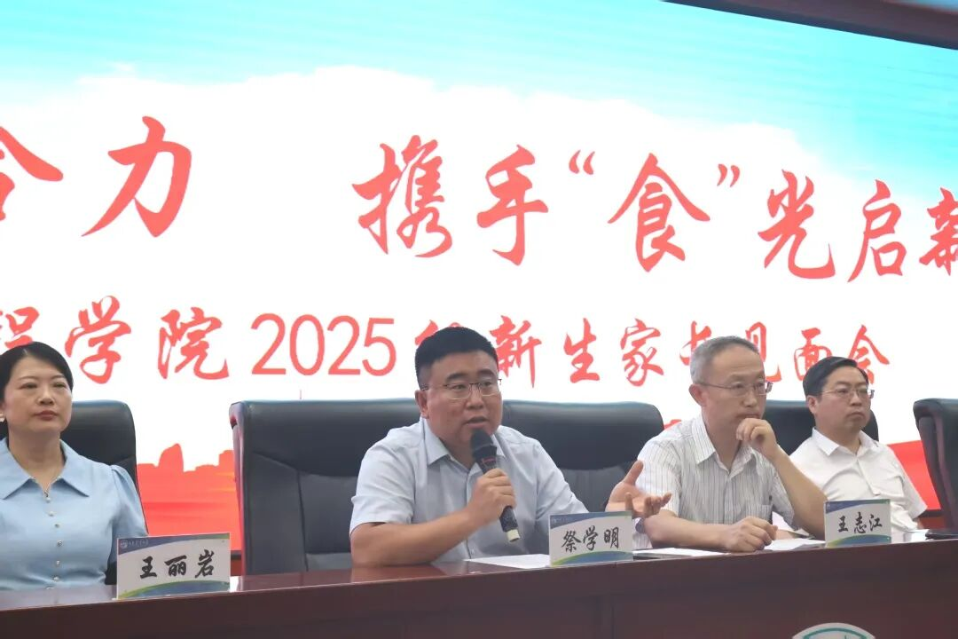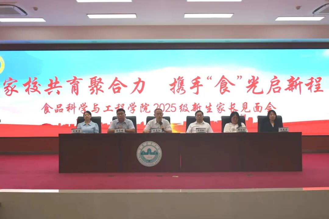 为帮助2025级新生及家长快速熟悉学校环境,搭建家校沟通桥梁,凝聚育人共识,2025年9月13日,学院在中心教学楼一楼报告厅组织召开“家校共育聚合力 携手食光启新程”2025级新生及家长见面会,学院党委书记王志江,院长于寒松,党委副书记祭学明,副院长郑明珠、刘美宏、王丽岩参加了会议,会议由2025级辅导员沈雪康老师主持。