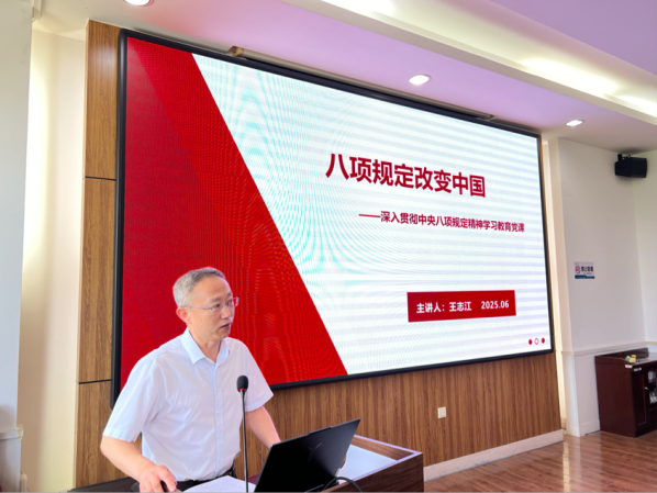 课上,王志江书记以“八项规定改变中国”为主题展开阐述,讲解八项规定的制定和实施历程,并解读了中央八项规定精神的核心要义。希望全体毕业生党员到工作岗位之后,时刻自持、严于律己,清清白白履职、坦坦荡荡做事,奋力书写为中国式现代化挺膺担当的青春篇章。