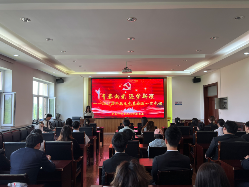 为进一步提升毕业生党员的党性修养,激励全体毕业生党员牢记党员宗旨,以良好的精神面貌开启新征程,6月4日,学院党委在理工楼三楼会议室组织开展“青春向党 逐梦新程”2025届毕业生党员最后一次党课。学院党委书记王志江受邀为毕业生上最后一堂党课。